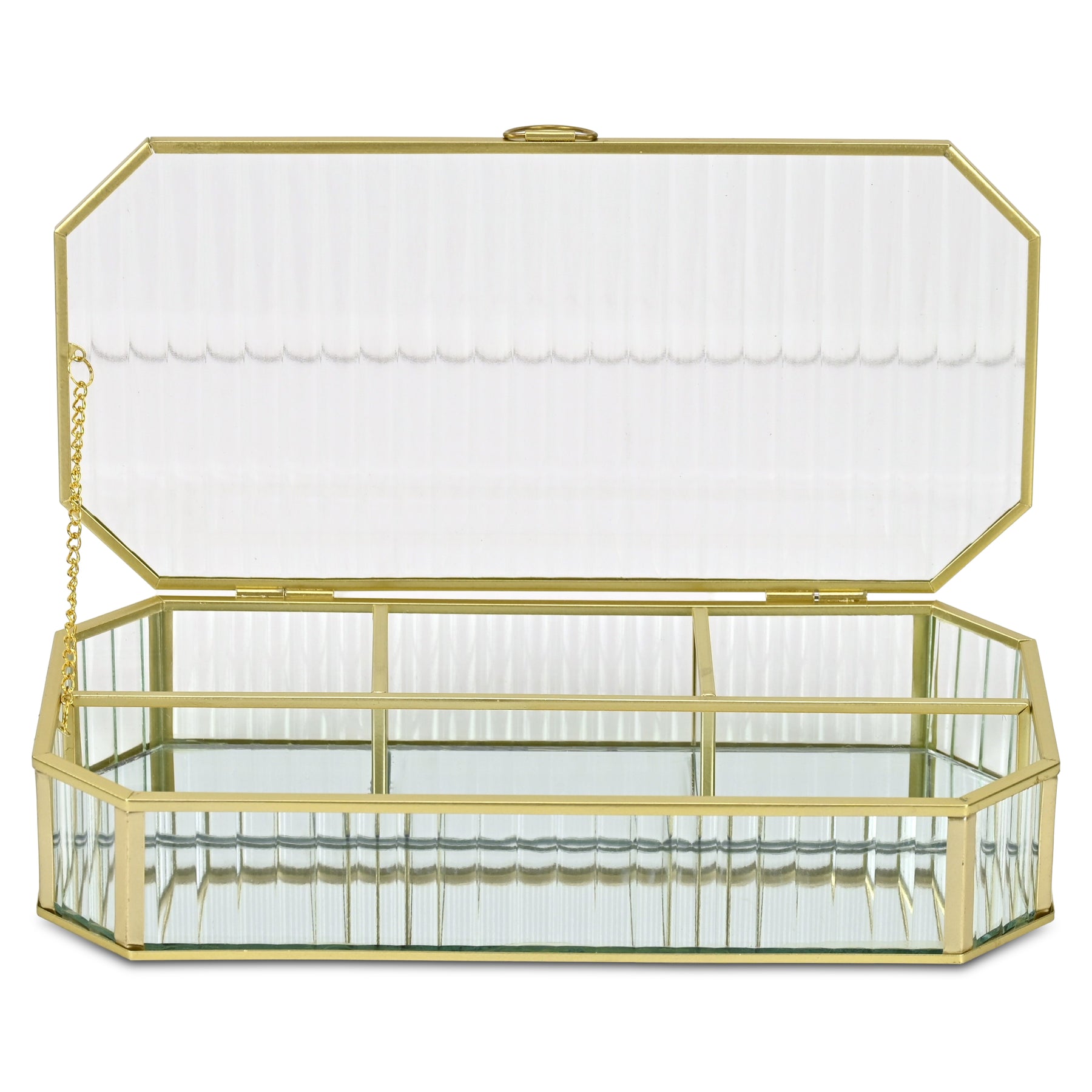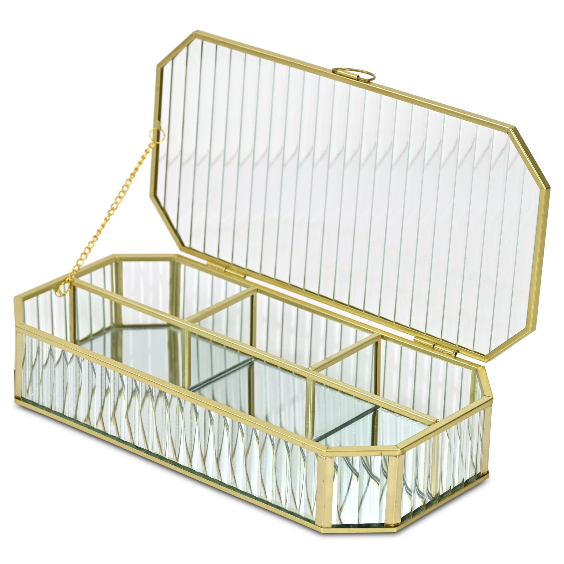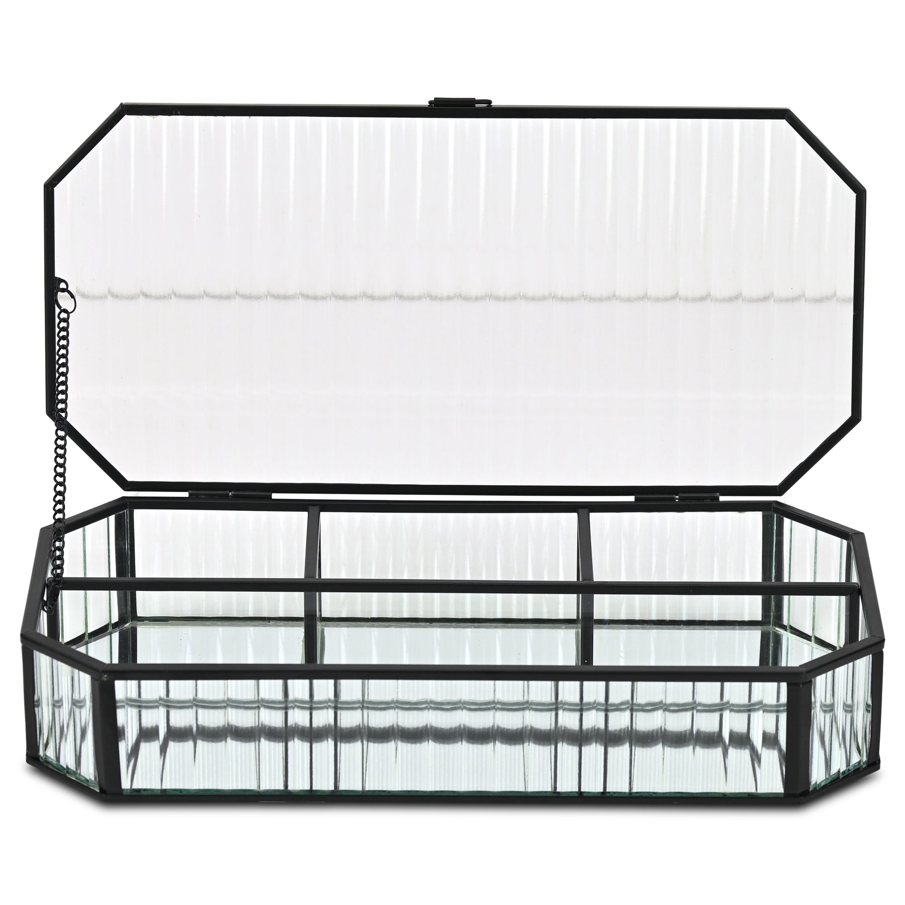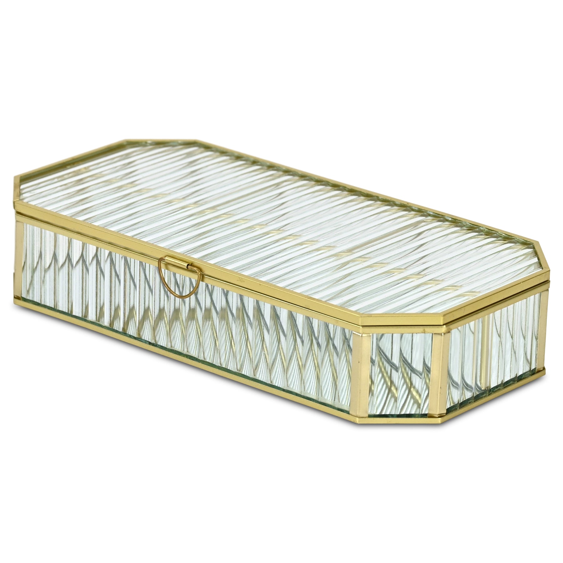 Made with fluted glass and a durable handcrafted metal frame, this premium storage box offers long-lasting quality and luxury.
