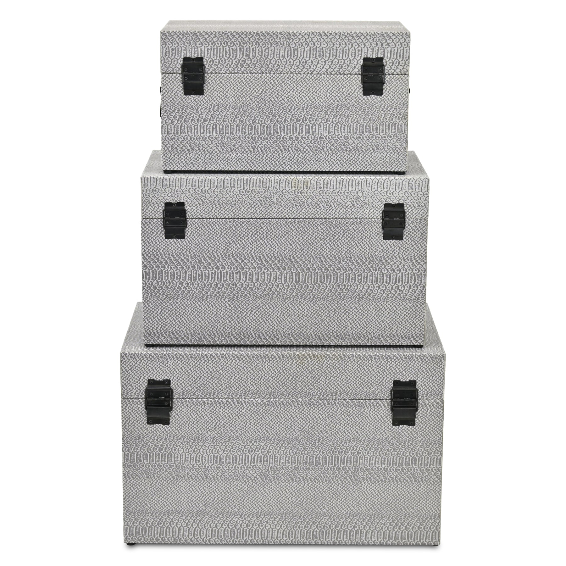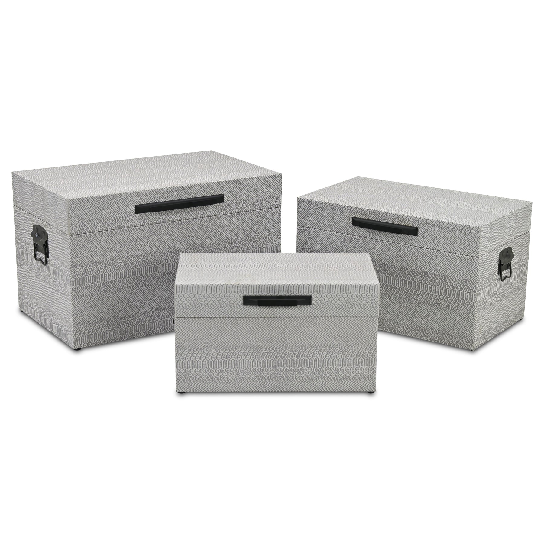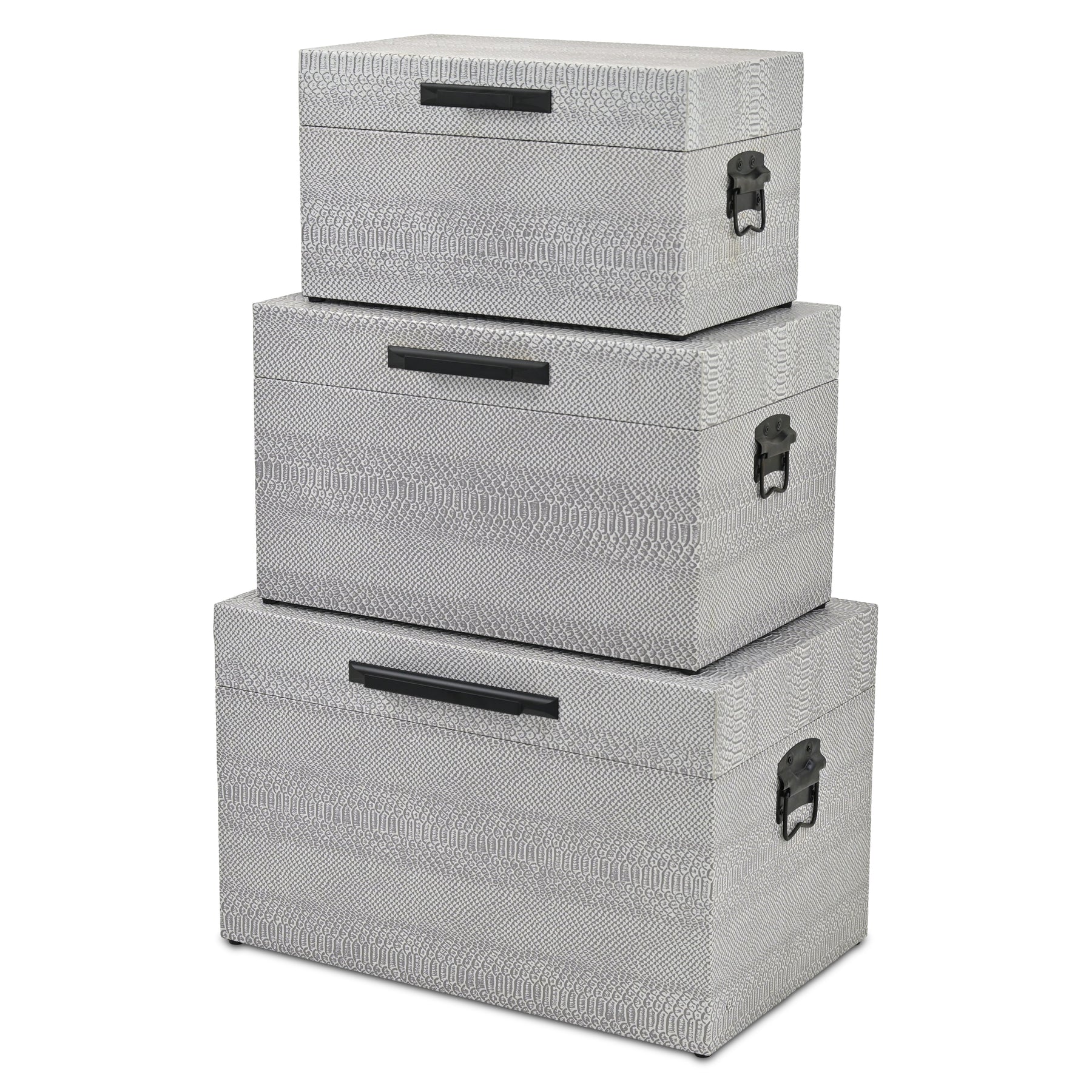 Anouk Set of 3 Snakeskin Themed Vinyl Trunks with Black Handles - Gray