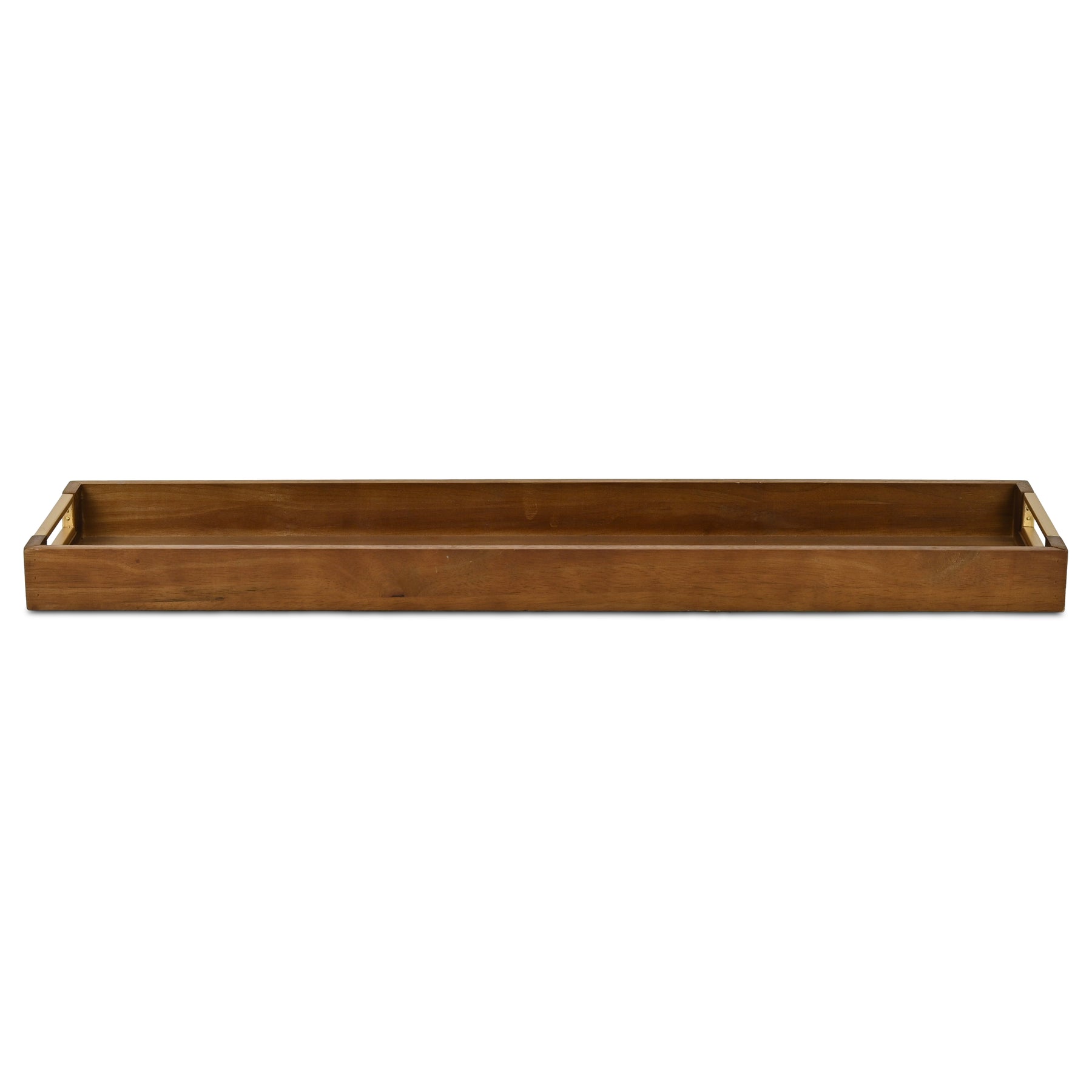 Nyssa Brown Wood & Gold Metal Rectangle Tray