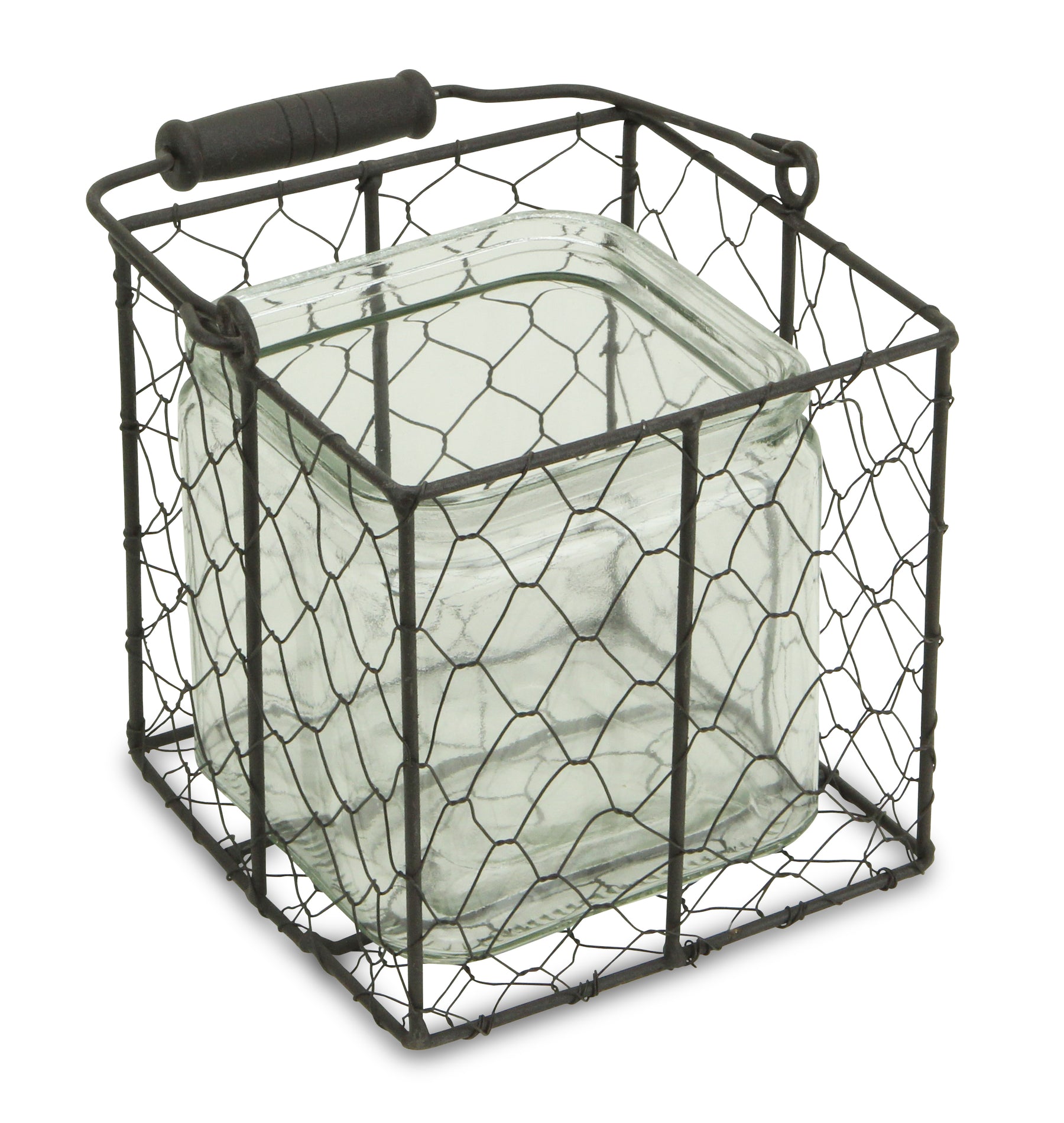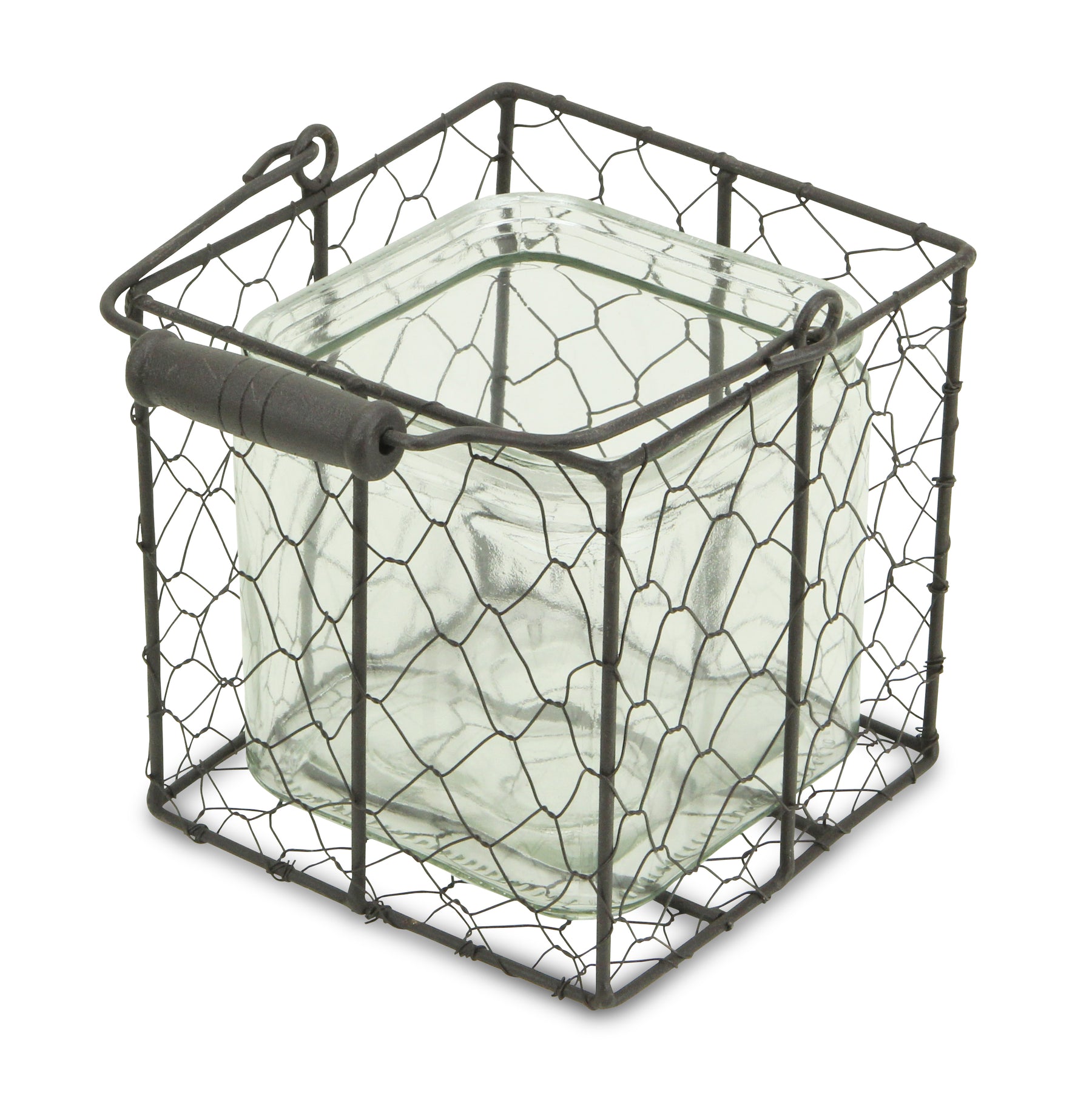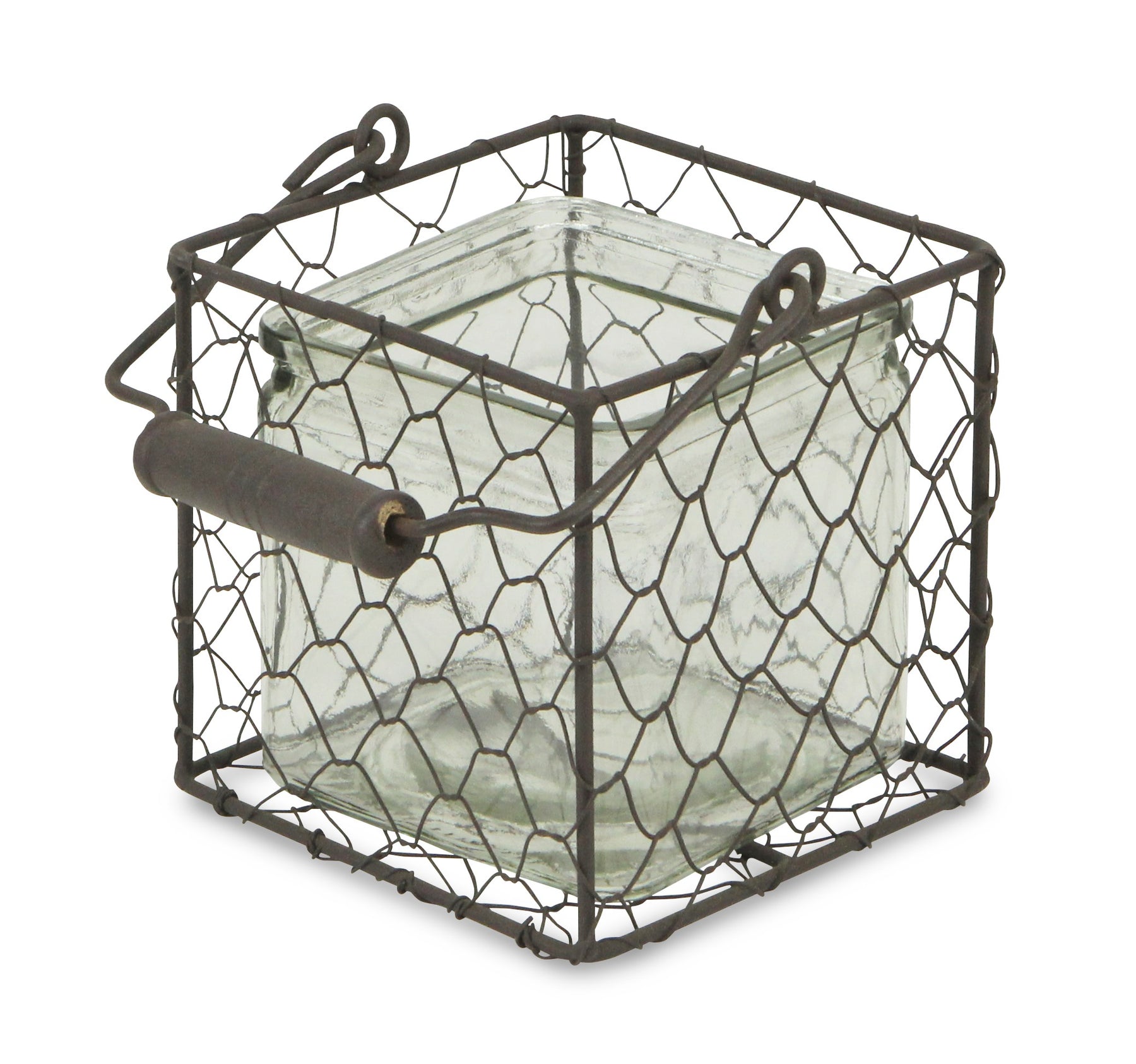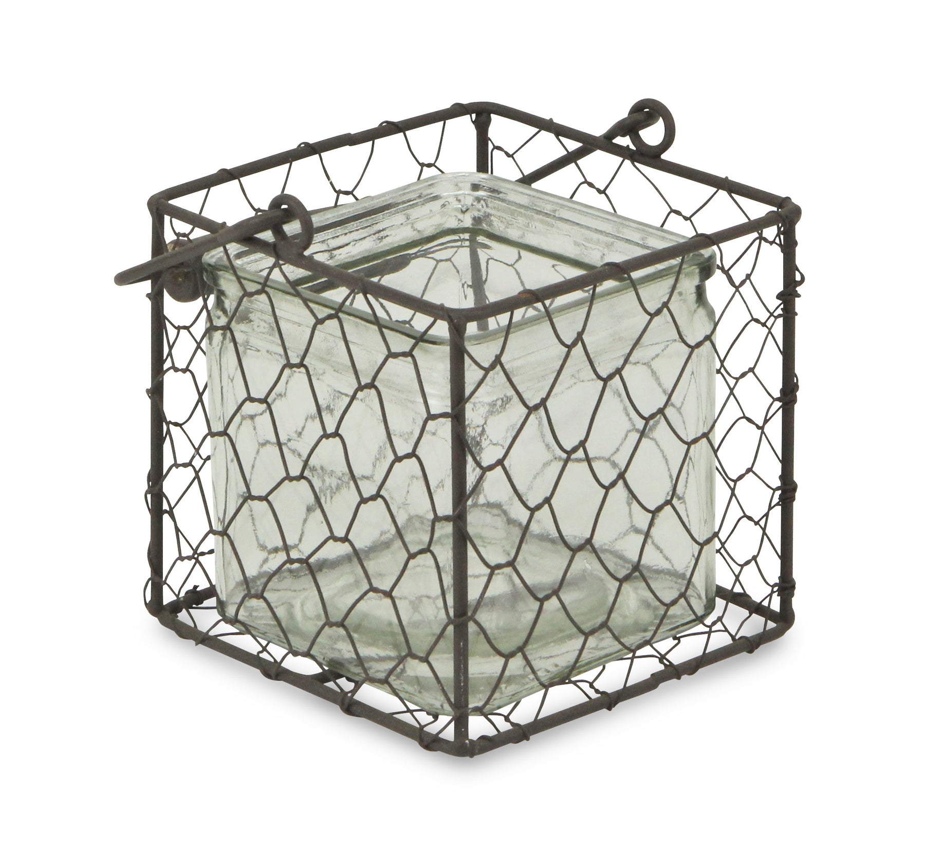 Lg: Wire: L: 5.5" x W: 5.5" x H: 5.5" x Glass: L: 4.625" x W: 4.625" x H: 4.75"