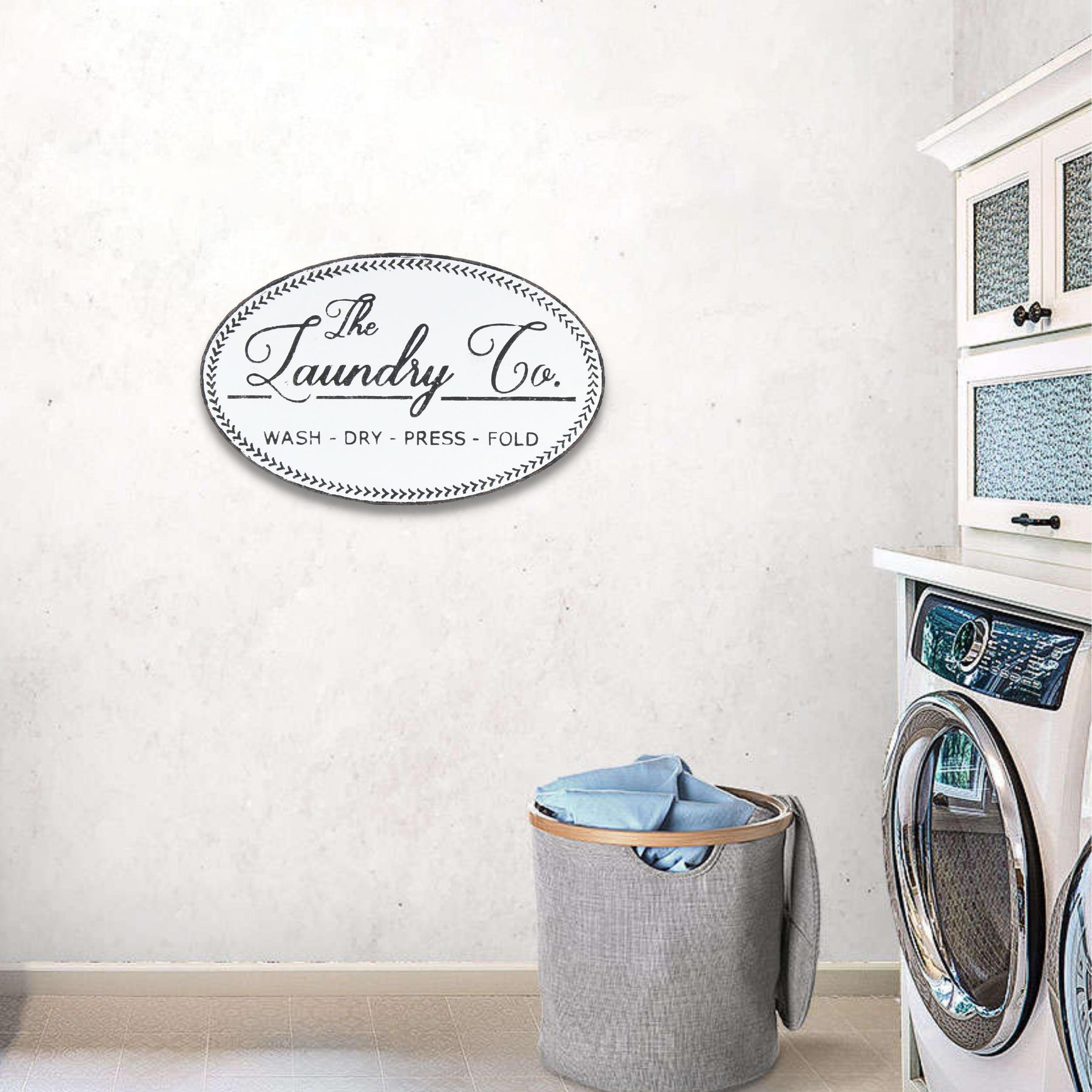 Karla Rustic Metal Laundry Sign - White